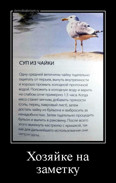 жестокая загадка в тему Мужчина пришел в ресторан и заказал мясо чайки. Попробовал и после этого покончил жизнь самоубийством.