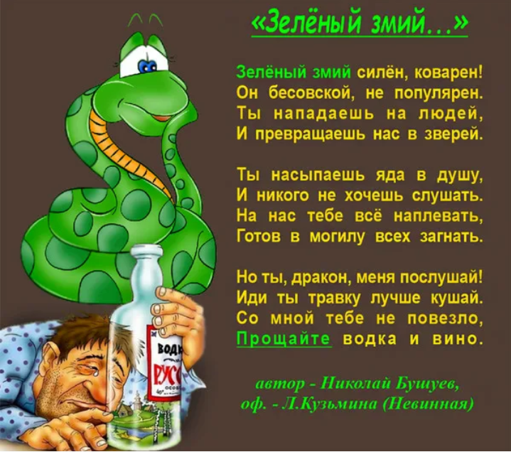 Цитата PVV (  ) Сейчас, Слава Богу, гонений нет Я можно сказать через Ленина(Ульянова) пришла к Вере. Мне любопытно так стало. То есть он сам имел богословское образование и сам же потом громил храмы. Что же товарисщ Ленин знал1!! такое!!! что так боялся церкви-??? В принципе верят люди и верят и не кому не мешает. Ну не убей, не укради-это даже глухой знает. А Ленину как кость в горле была эта Вера. при чем любая-хоть бабтисты, хоть католики или правослпавная. Реально выжигали все.. А знакомый мой вообще из сатанистов к Вере пришел. чего они вытворяли на кладбище,и с Библией -здесь писать не буду.Цитата PVV (  ) Шико - это мистика, можно улететь Можно и с суеверия начать. Это попроще. Или с грехов. Твой какой любимый грех))? Да и мой тоже )) Зелёный змий (змей) — образное выражение русского языка, означающее водку и иные спиртные напитки. Также употребляется для обозначения пьянства в целом. Выражение «до зелёного змия допиться (напиваться)» указывает на сильнейшую степень опьянения.